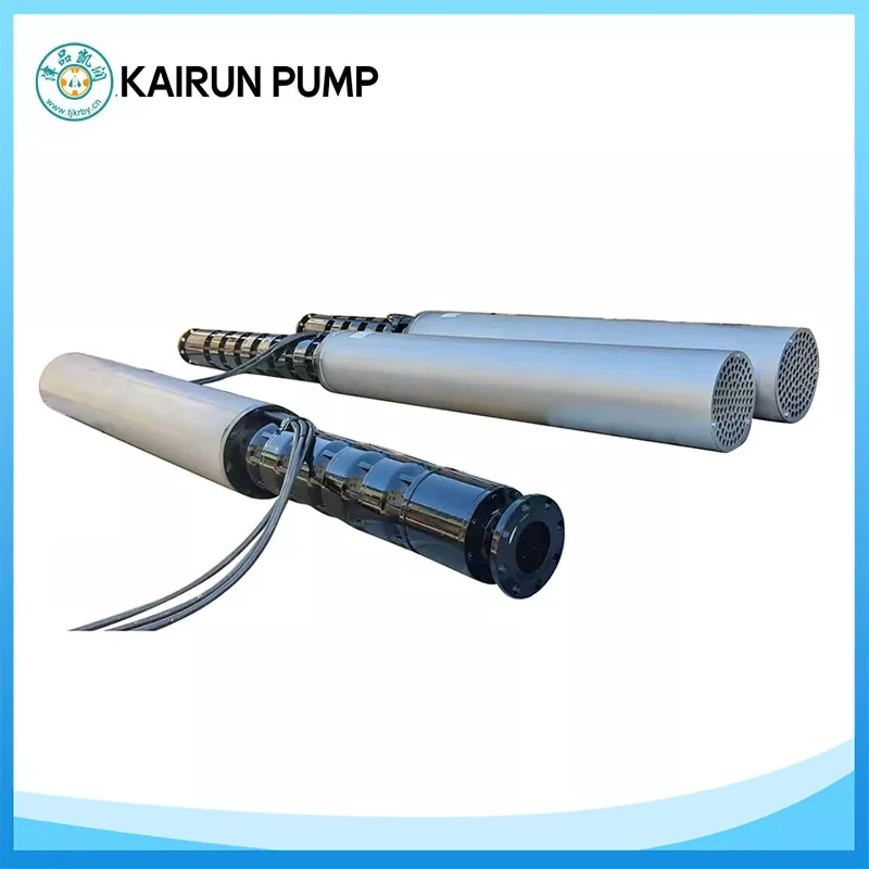 A bomba submersível para poços profundos da Kairun Pump é uma unidade completa construída especificamente para extração de águas subterrâneas profundas. Integra motor e bomba em uma estrutura compacta, eliminando a necessidade de uma sala de bombas em terra e reduzindo custos de instalação e civis.